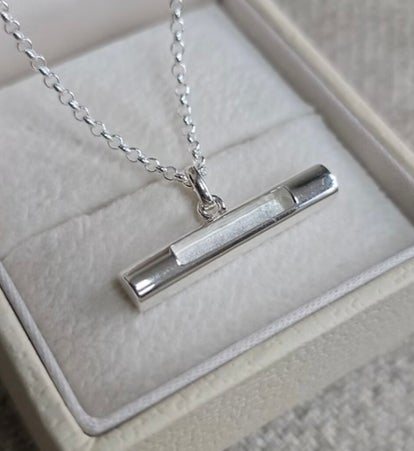 Sterling silver simple horizontal T-bar pendant with plenty of room for your inclusion, its understated style allows for a private and personal tribute.