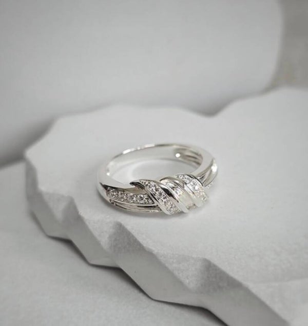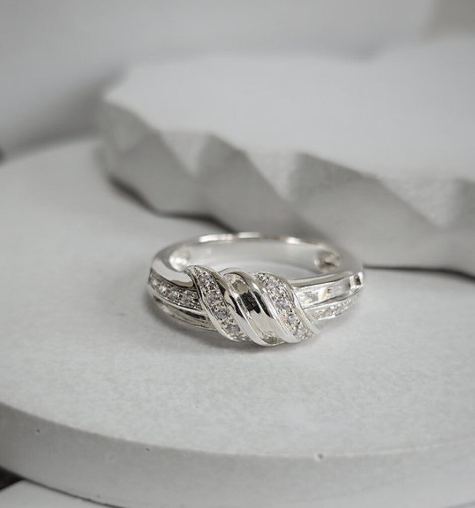 Sterling silver and cubic zirconia band style ring with 3 chambers for resin.