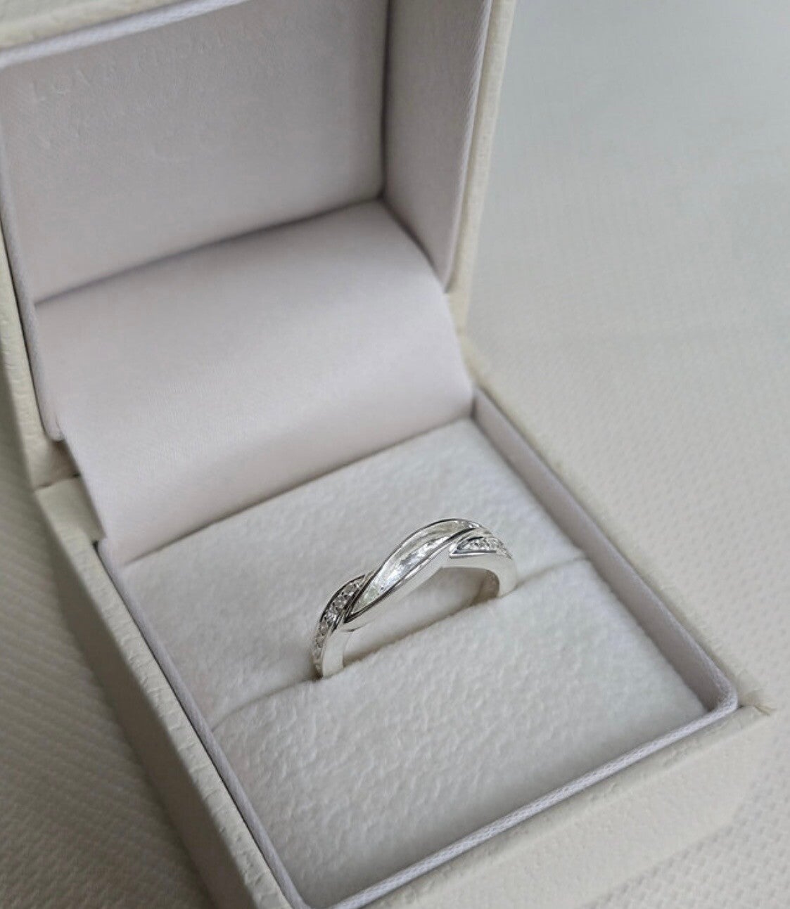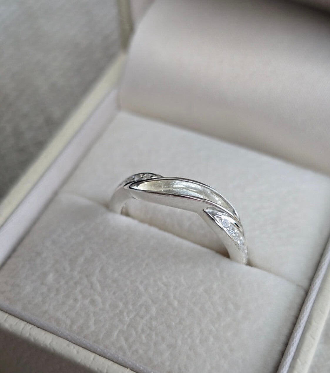 A simple and elegant sterling silver 925 single channel ring setting, with cubic zirconia shoulders. A perfect memorial inclusion wedding band option.