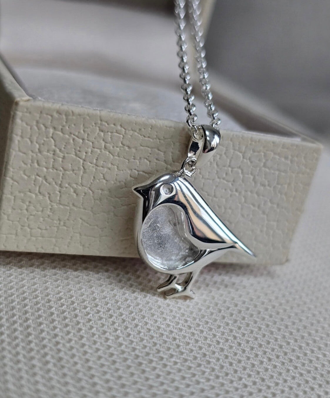 Sterling silver Robin pendant with front recess for resin casting. Beautiful 925 mount for memorial Keepsakes.