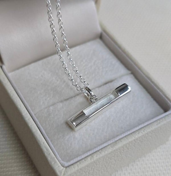 Sterling silver 925. Exclusive design T-Bar style pendant with central recess for resin casting. Flat backed to ensure a comfortable wear, while also making this setting easier to cast and engrave.