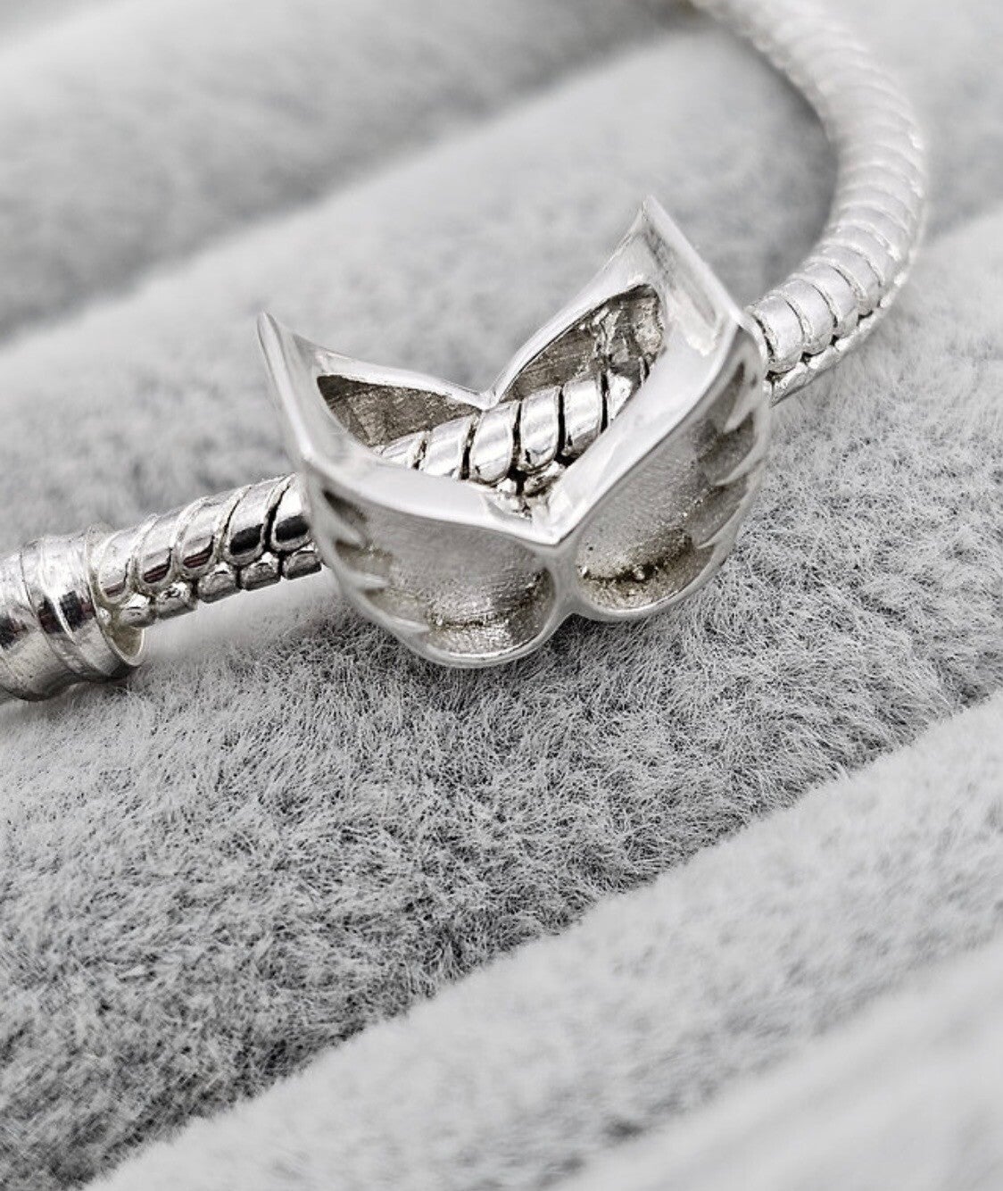 Double angel wings bracelet charms are compatible with Pandora and all other popular charm bracelets. 925 silver.