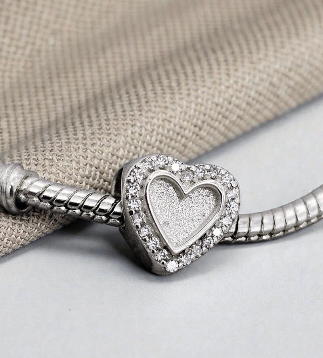The CZ heart charms are made using fine 925 Silver. Suitable pandora style bracelets.