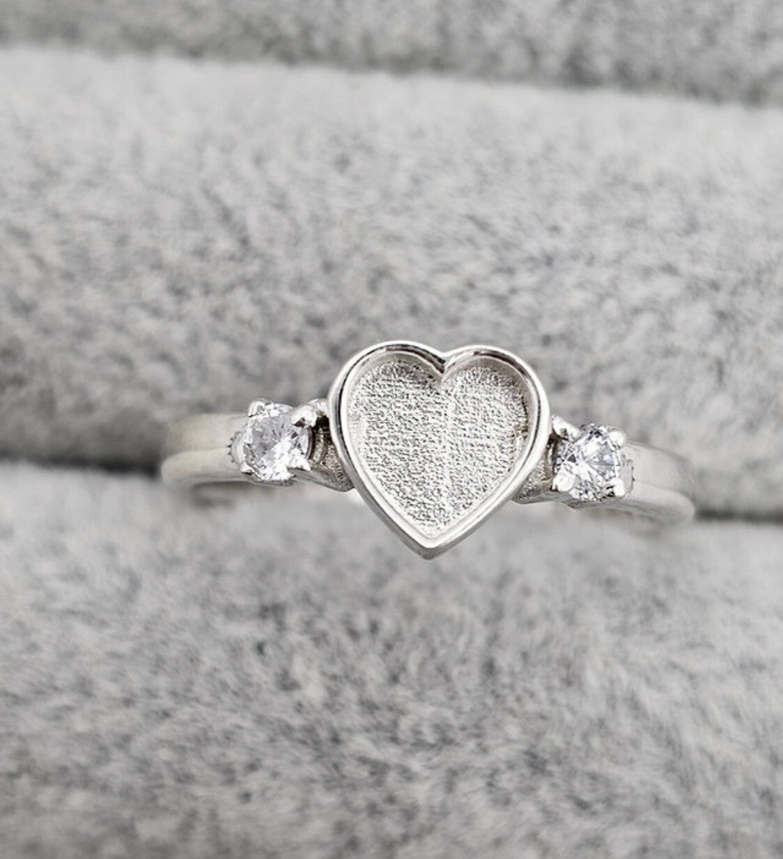 This beautiful 925 silver double CZ gem ring comes in 2 shapes - round or heart with approx 6mm bezels for your inclusions. Comes in a size range of H to W.
