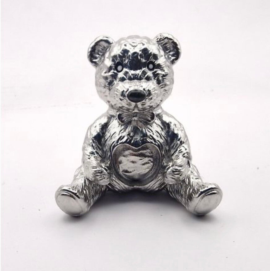 Stainless steel teddy bear ornament heart recess for an inclusion.