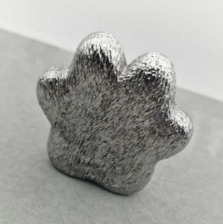 Stainless steel paw print ornament with a blank heart recess for an inclusion. Available with or without separate stand.
